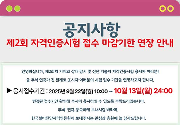 [공고] 2025년도 제2회차 기계의 상태 감시 및 진단 기술자 자격인증시험 응시자 안내